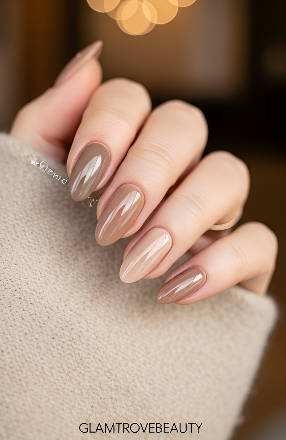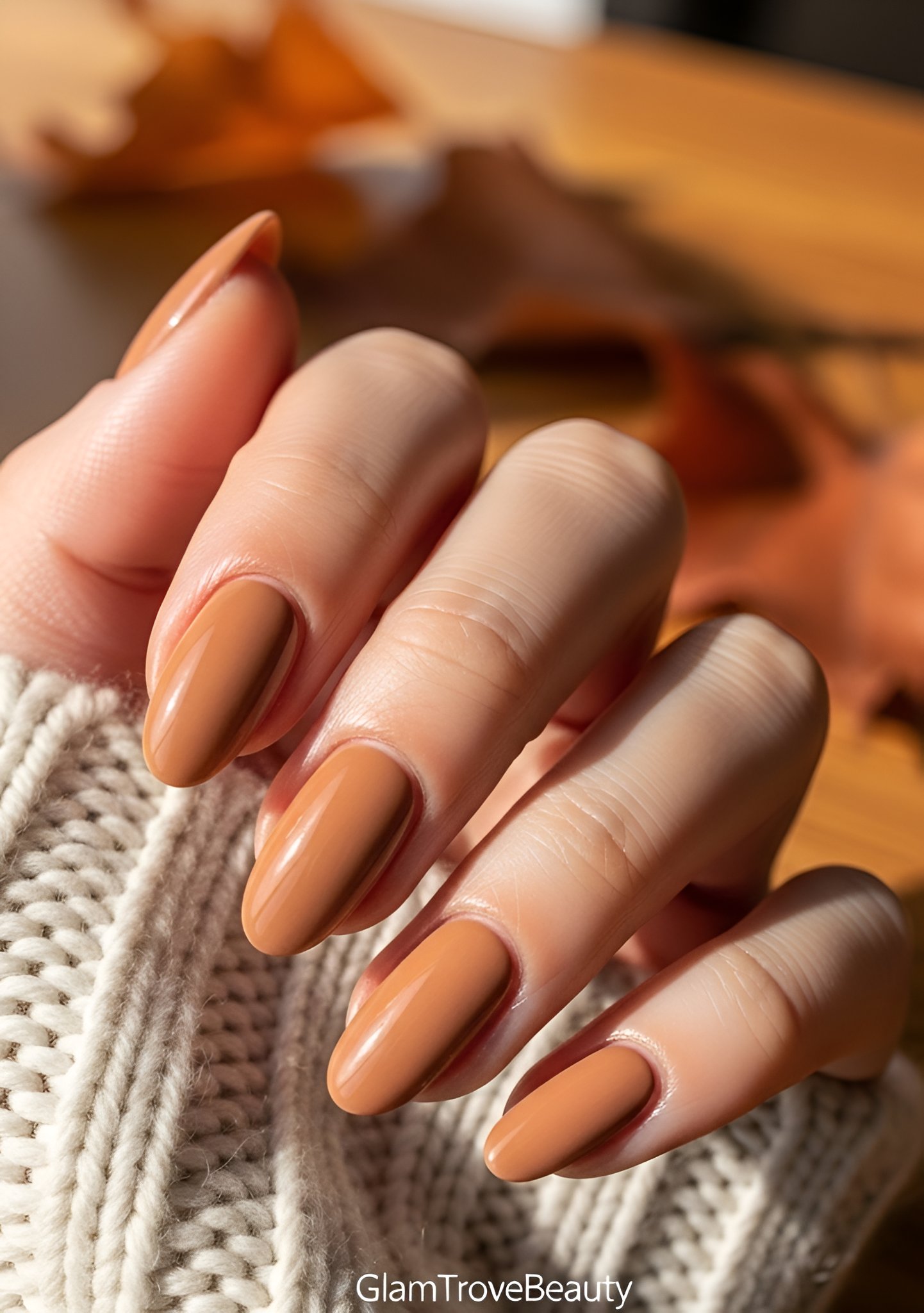 A soft blush or beige base with a luxurious matte finish that feels as cozy as your favorite fall scarf.