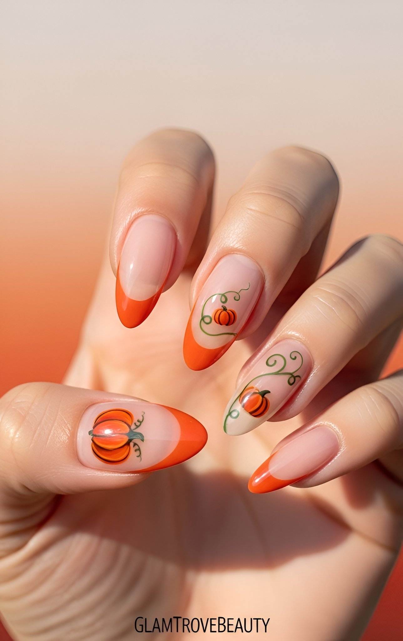 Pumpkin Frenchies, dark floral, and wine red velvet nails work beautifully for a pre-Halloween vibe.